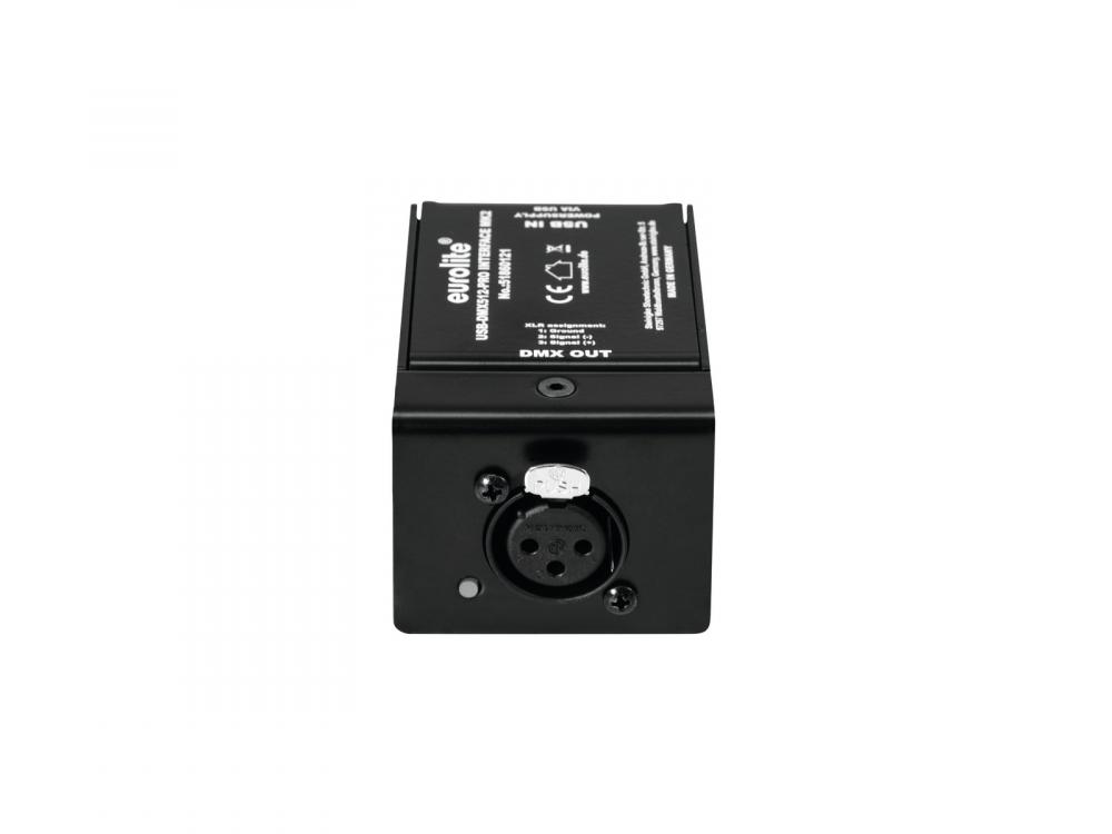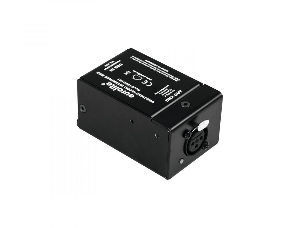 USB DMX interface with integrated processor for steady DMX output -Pro USB DMX interface for controlling DMX devices with a computer -Works with FreeStyler, DMXControl 3, PC_DIMMER, Lightkey (MAC) -Output of 512 DMX channels -Integrated CPU for steady DMX output -Windows 7, 8 and 10, Mac OS X, Linux -Connections: 3-pin XLR jack (Neutrik), USB 2.0/1.1 B -DMX output galvanically isolated against overvoltage -Powered via USB -Rugged metal body for use on stage -Including USB A/B cable 0.5 m -PC driver available for download at www.eurolite.de -PC connect: EUROLITE LED PC-Control 512 via USB -Power connection: Mains Input Socket (M) USB, type B Power supply cord for USB A mains connection (provided) -Controller useable for: Controls KLS in general; general mix of colors; Controls Moving Lights; Controls DMX effects; Luminaires for white -Control: DMX |