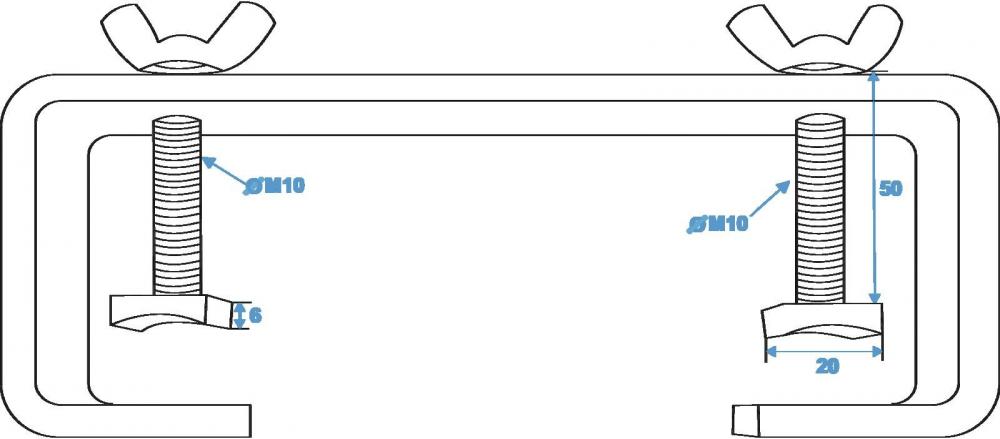 Long mounting clamp for 50 mm tube, maximum load WLL 30 kg -C-hook for suspending crossbeams, Alu-Bars, aluminum tubes etc. -Tube diameter sector: 45 - 50 mm |