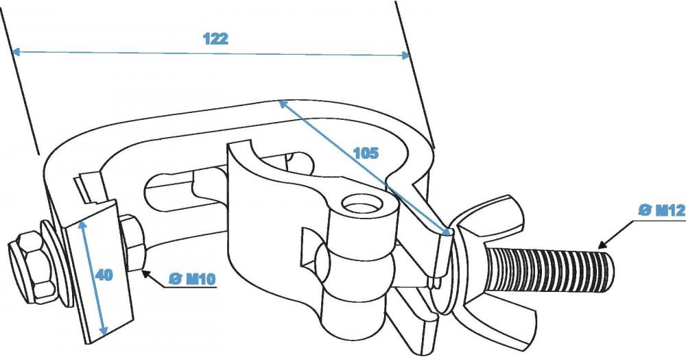 Professional mounting clamp for 50 mm tube, maximum load WLL 400 kg -Hook for installing projectors, lighting effects etc. via a truss system -For the installation at horizontal and vertical truss -Quick-lock hook -TÜV certified, certificate available -Tube diameter sector: 48 - 50 mm |