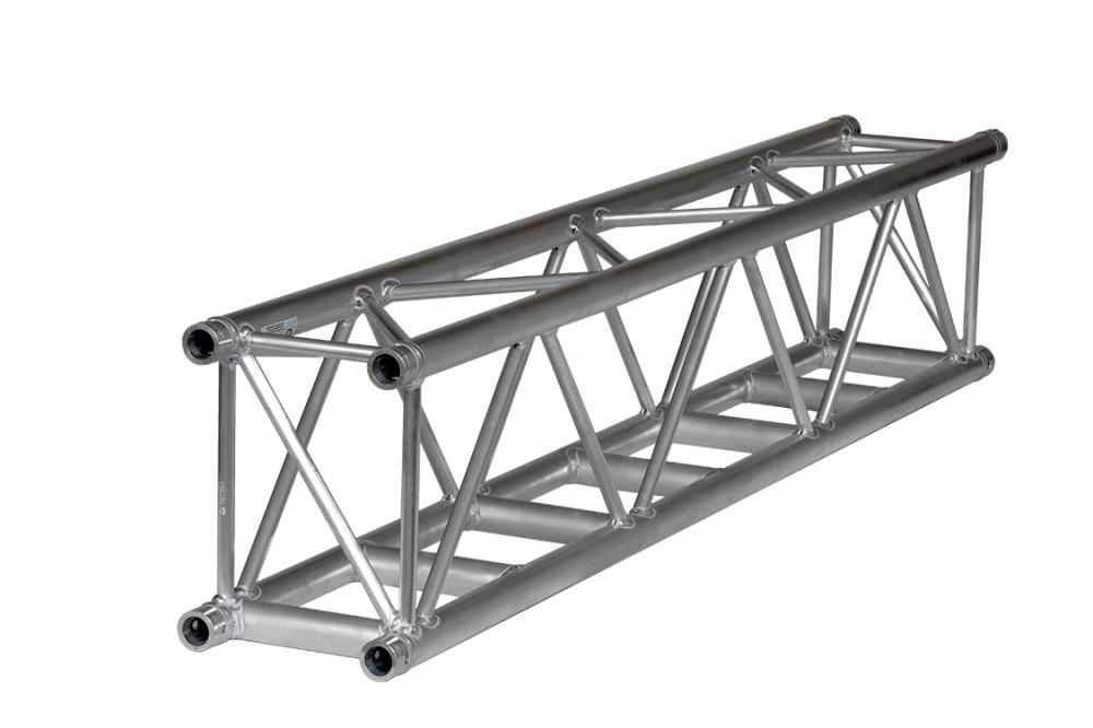 The H40R truss is a rectangular standard H40 truss constructed of main tubes (48,3 x 3 mm) and diagonals (20 x 2 mm). Equipped with the CCS6 conical coupling system the H40R has a clever program of specifications; compact and strong the H40R has three-sided webbing, the thicker braces on the bottom side allow easy mounting of moving heads and central loading, reducing the torsion effect resulting from one-sided loading in standard trusses. The spigot orientation follows that of the S series truss, allowing easy assembly while the truss is still on the floor. The H40R measures 387 mm high by 287 mm wide. The H40R is available in all standard lengths as well as a box-corner, a box corner attachment and the H40R MPT adapter; completing the H40R range to a convenient and flexible range.
