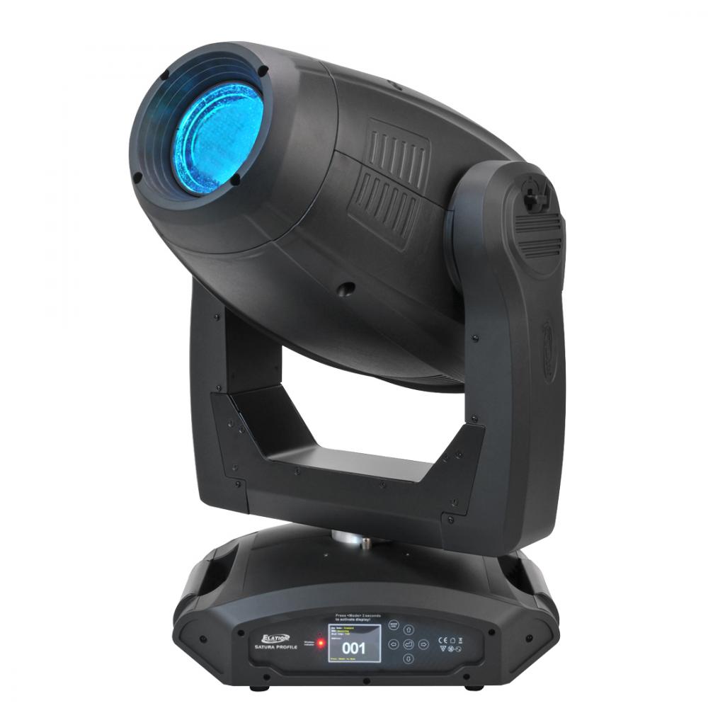 The Satura Profile™ features a 440W High CRI >85 Cool White LED engine, delivering a total of 20,000 lumen, state-of-the-art motorized 4-blade framing shutter module, 11° to 38° zoom and focus, full CMY color mixing plus linear CTO color correction, 7 dichroic colors and white (open), 6 rotating, interchangeable glass & metal gobos and 7 interchangeable static-stamped metal gobos, 3-facet rotating prism, wash frost filter, motorized iris, variable dimming curves, DMX, RDM (Remote Device Management), Art-NET (DMX over Ethernet) support, 3pin and 5pin DMX in/out, RJ45 etherCON in/out and powerCON in connections, flicker free operation for TV and Film, 6 button control full color 180° reversible menu display, 650W max power consumption and a multi-voltage universal auto switching power supply (120-240V).