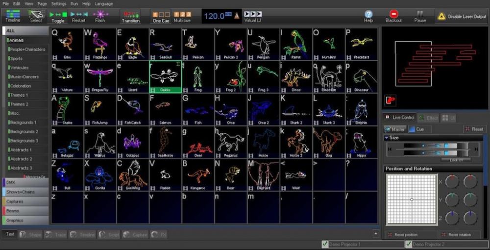 Pangolin BEYOND Essential is an all new professional level laser control software from Pangolin, which helps clients make high quality laser light shows in a Better, Faster, and Easier way. Pangolin Pangolin BEYOND Essential combines the ease of use of QuickShow, together with the power of their professional level LD2000 product, and also incorporates a variety of new features, that help to address the growing trends emerging in laser entertainment. Namely, allowing operators to control multiple laser projectors in an easy to use way, and giving operators tools that allow them to easily combine laser with other effects, to produce a multimedia show. When using Pangolin Pangolin BEYOND Essential, you can also “mix and match” hardware as you see fit giving you an extra degree of flexibility when setting up your laser shows. Pangolin Pangolin BEYOND Essential continues that ease of use. A Pangolin Pangolin BEYOND Essential system consists of software and hardware for PC computers. The two components work together to get the best possible performance from laser projectors. Pangolin BEYOND Essential software lets you create, edit and present laser graphics and beam effects. Pangolin BEYOND Essential hardware converts software commands into signals to control an ILDA-compatible laser projector. |