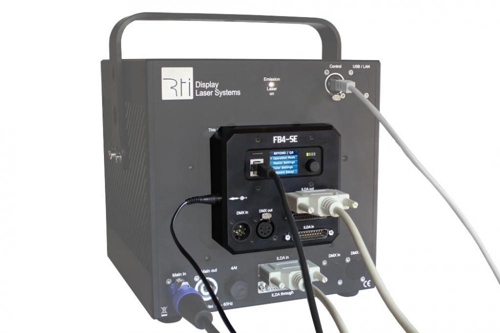 General The RTI Pangolin FB-4 Quickshow 'Standard' is a network interface, which runs with Pangolin Quickshow or Pangolin BEYOND. Pangolin Quickshow is included. There is no need any more to connect a computer to the show laser through an ILDA interface. Depending on your needs different versions are available: for DMX and/or ILDA control, for network control and with SD card memory. RTI Pangolin FB-4 Quickshow 'Standard' can be used with every show laser system, providing one of the features mentioned above, independent of the brand. Features of RTI Pangolin FB-4 Quickshow 'Standard' are: Full Ethernet control Stand-alone SD memory card Full color OLED display Support for DMX and/or ILDA (depending on the version) Support scan speed of up to 120kpps Support for 6-color channels Improved laser output with interpolation Show laser systems of RTI with detachable remote control pads even allow fixing the RTI Pangolin FB-4 Quickshow 'Standard' housing directly at the laser device. The integrated full color OLED display provides various setting options: Projector settings Network settings Color palette settings Geometric corrections Safety settings Clock etc. RTI FB-4 QS ‘Standard’ RTI FB-4 QS ‘Standard’ runs the laser control software of Pangolin Quickshow and offers the possibility to control the show laser system through ILDA or by the onboard SD-memory. For ILDA control: Just connect a network cable (CAT5) from your computer, running Pangolin Quickshow (software is included in this package), to the network port of the RTI Pangolin FB-4 Quickshow 'Standard'. Then connect an ILDA cable from this network interface to the show laser. With SD-memory: Lighting Console Mode: Create content in Pangolin software and then export this content to the onboard SD-memory (included in delivery). The computer can be eliminated for the show laser setup, which can be controlled through a lighting console now. This option is ideal for lighting designers. Auto Mode: Create content in Pangolin software and then export this content to the onboard SD-memory (included in delivery). It is possible to playback the content from the SD-memory automatically, without the need for a computer. RTI Pangolin FB-4 Quickshow 'Standard' features an internal clock, which allows setting a given time for playback. |